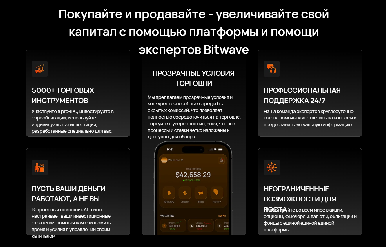 Bitwave Capital рекламирует «низкие спреды», «доступ к мировым рынкам», «поддержка 24/7». Но при проверке условий торговли становится видно: