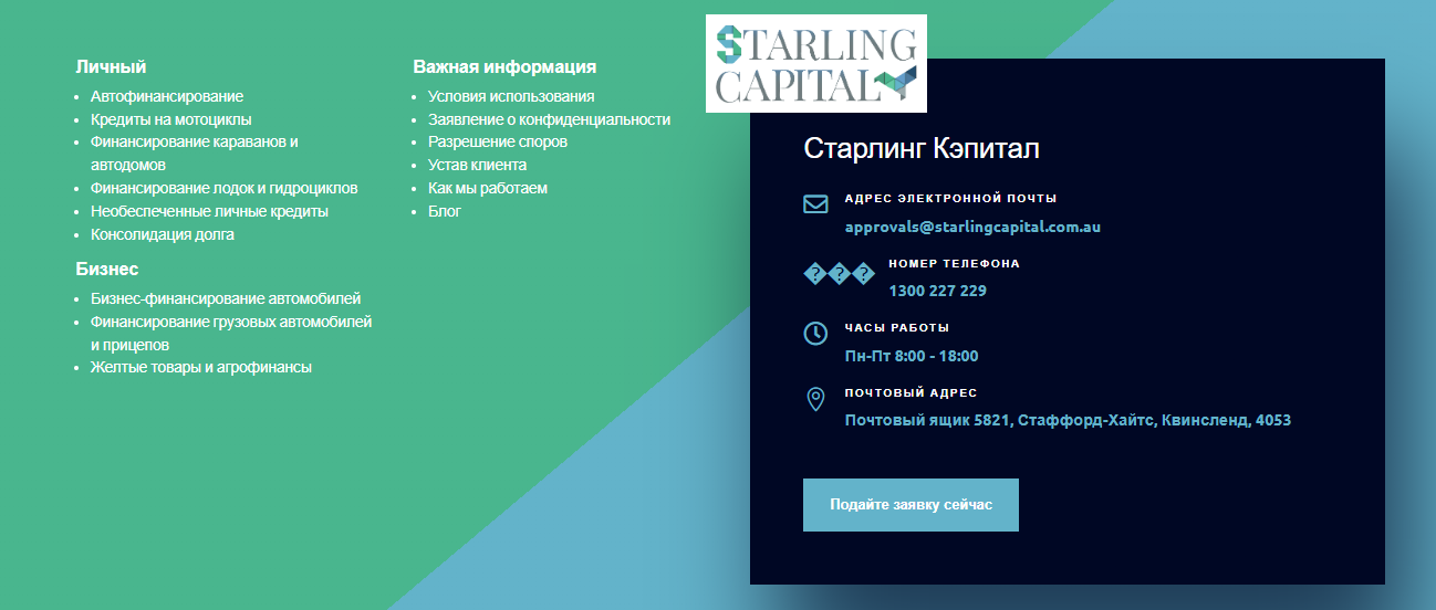 Первое, что обращает на себя внимание, — отсутствие юридической определённости. Starling Capital не раскрывает информацию о компании-владельце проекта и не указывает, в какой стране она зарегистрирована. На сайте нет юридического адреса, регистрационного номера и данных о руководстве.