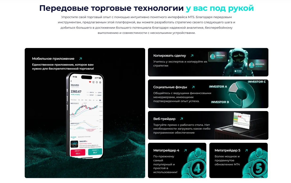 Также предлагается функция копи-трейдинга, позволяющая подписываться на сигналы других трейдеров через собственную систему.