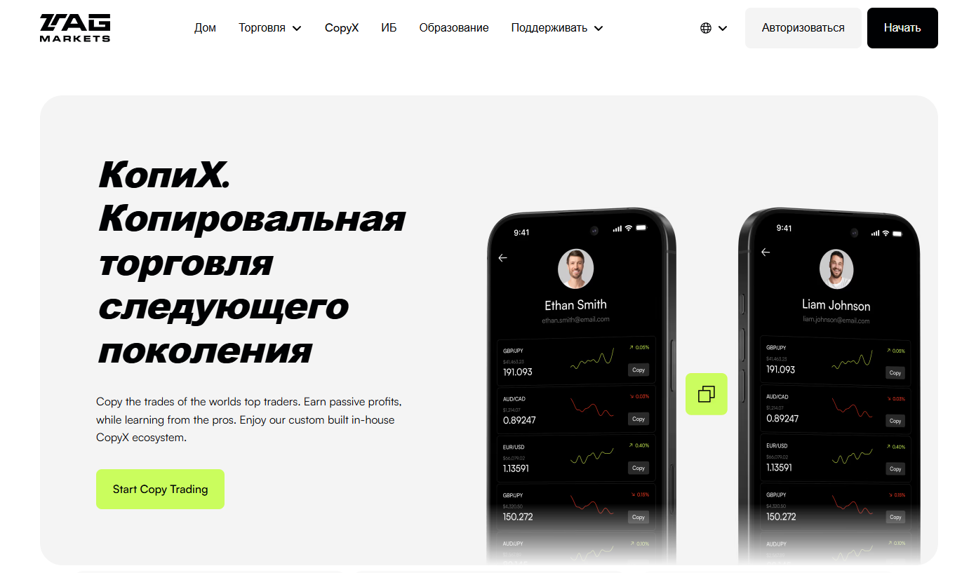 Копи трейдинг и доверительное управление продвигаются как ключевые продукты Tag Markets. Компания не раскрывает информацию о трейдерах, управляющих средствами клиентов, не предоставляет лицензий и не объясняет, как формируется статистика доходности.